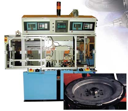 Production level balancing for flywheels and flexplates can be easily delivered with the fully-automatic balancer pictured below. In addition to robotic loading and punch correction, this balancer automatically tunes correction amounts to reduce cycle times.