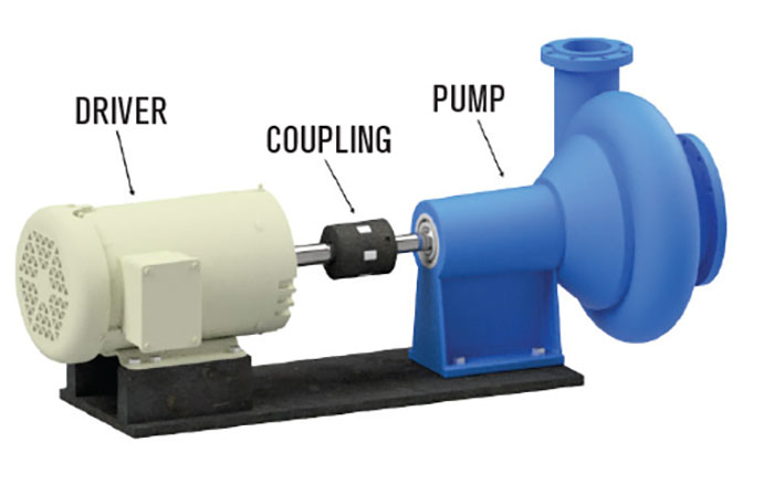 All other components should be aligned to the centerline of the pump. Even with the shafts aligned, an imbalance of the rotating assembly can occur with a bad coupling.